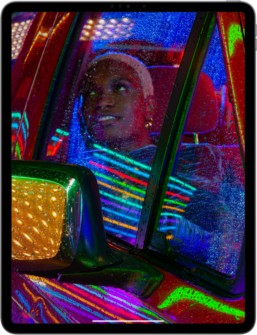 12.9-inch Liquid Retina XDR display showing full-screen photo on iPad Pro.