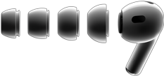 Cuatro pares de almohadillas tamaño extrachico, chico, mediano y grande, uno de los AirPods