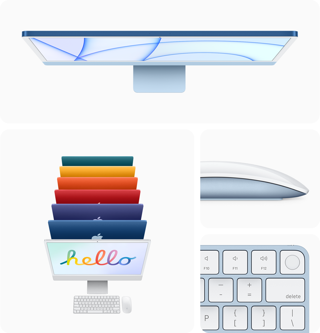 Con sus siete colores espectaculares y un increíble diseño de tan sólo 11.5 mm de grosor y menos de 5 kilos de peso, la iMac transforma cualquier espacio.
