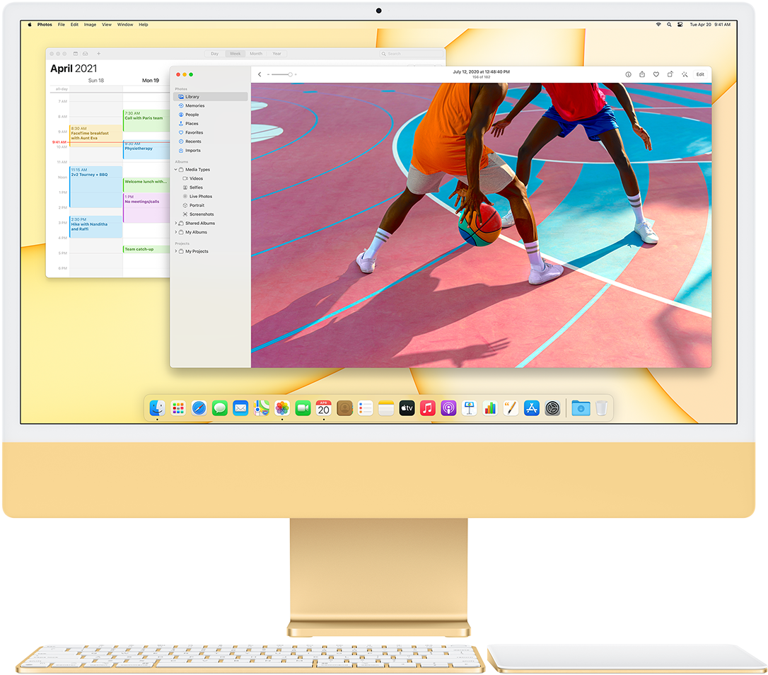 El chip M1 y macOS llevan la iMac a otro nivel de rendimiento. Se activa al instante, las apps se abren en el momento y todo el sistema funciona rápido y sin demoras.