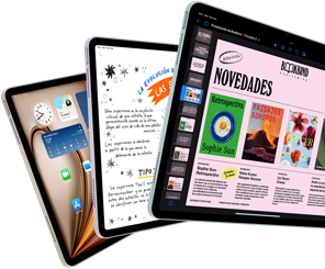 Te presentamos el rediseñado iPad Air, ahora en dos tamaños. Con la espectacular pantalla Liquid Retina, los superpoderes del chip M2 de Apple, la nueva cámara frontal en horizontal y una batería que te acompaña todo el día. Disponible en cuatro colores increíbles. Disponible en cuatro colores increíbles.