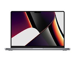 Pruebas realizadas por Apple en septiembre de 2021 con sistemas en preproducción de la MacBook Pro de 14 pulgadas con el chip M1 Max de Apple, CPU de 10 núcleos, GPU de 32 núcleos, 64 GB de RAM y SSD de 8 TB, así como sistemas en producción de la MacBook Pro de 13 pulgadas con procesador Intel Core i7 de 4 núcleos y 2.3 GHz con Intel Iris Plus Graphics, 32 GB de RAM y SSD de 4 TB. Pruebas realizadas con una versión preliminar de Final Cut Pro 10.6 usando un proyecto complejo de 2 minutos con contenido ProRes 422 4K. Las pruebas de rendimiento se realizan con sistemas informáticos específicos y reflejan el rendimiento aproximado de la MacBook Pro.