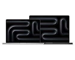 Un conjunto de laptops MacBook Pro que resaltan su gran pantalla y su diseño delgado