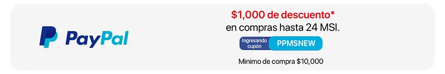 Obtén un cupón de $1,000 de descuento en compras de hasta 24 MSI usando el código PPMSNEW - con PayPal