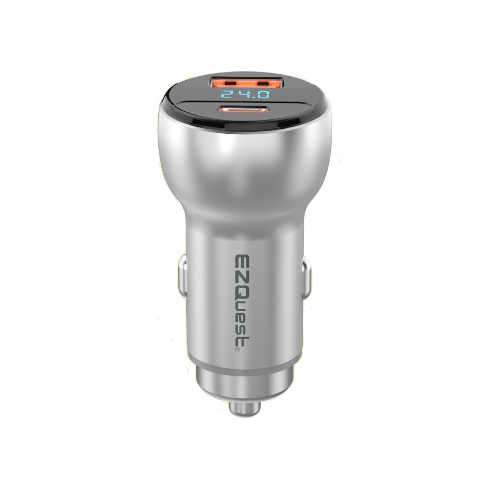 cargador de auto ezquest p20066 dual usb-a usb-c 66w plata